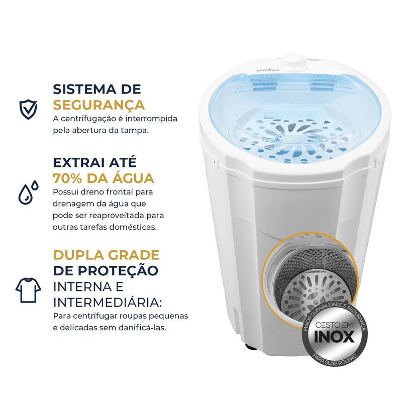 Centrifuga Roupas 15Kg Britânia Cesto Extragrande Inox BCR15B - Outlet